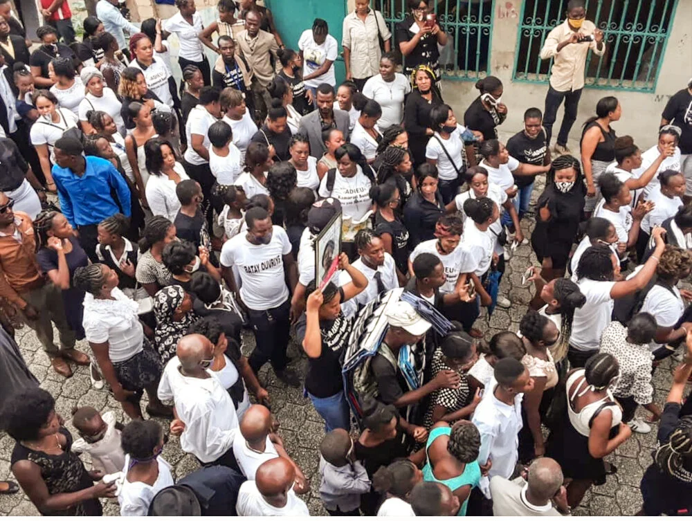 On July 31, 2020, workers at the Haitian firm Palm Apparel (a “Gildan Brands” subcontractor) held a mass funeral for one of their co-workers, Sandra Rene, who died on July 19, 2020 because of Alain Villard, and Palm Apparel. Palm Apparel is a sweatshop in Carrefour owned by capitalist Alain Villard. She was 30 years old and six months pregnant with her first child. She died, along with the child she was carrying, because she was sick and was denied medical care during an international pandemic, something that should have made worldwide headlines! She was turned away from the hospital because Palm Apparel, where she worked for over 10 years, stole her health insurance payments along with those of all of its workers. OFATMA – the state insurance provider – refused to cover Sandra’s care.